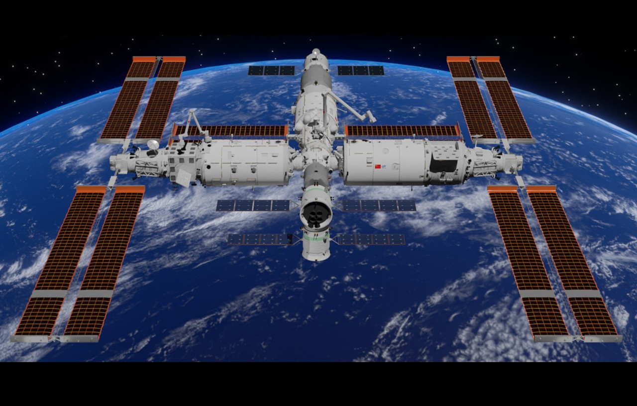 中國天宮太空站由天和核心艙、問天實驗艙、夢天實驗艙 3 個艙段組成,自 2022 年 11 月起於地球軌道上全面運行,和國際太空站一樣進行各種太空實驗、測試太空技術。